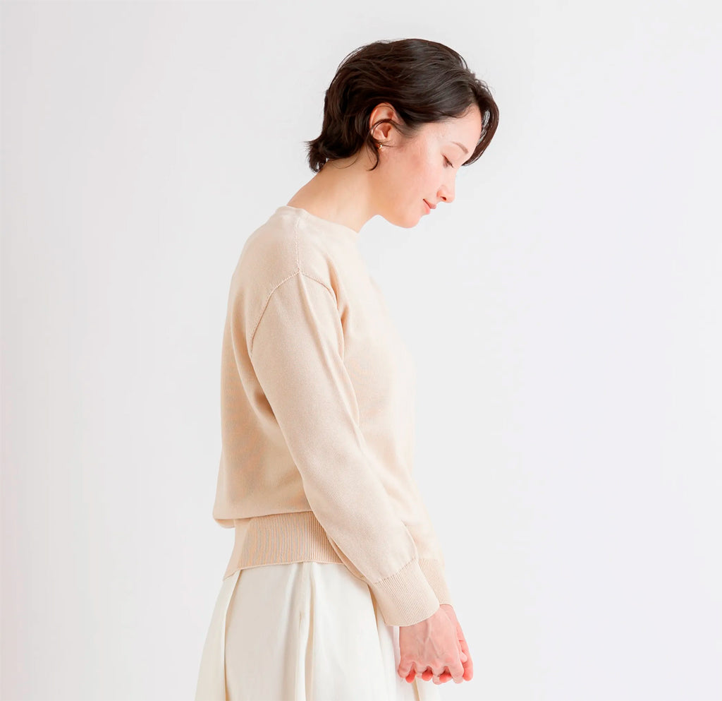 「天衣無縫」では、ブランド名にも通じるホールガーメントを多くのニット製品に採用しています。なめらかで軽やかな、着心地の良さをお楽しみください。