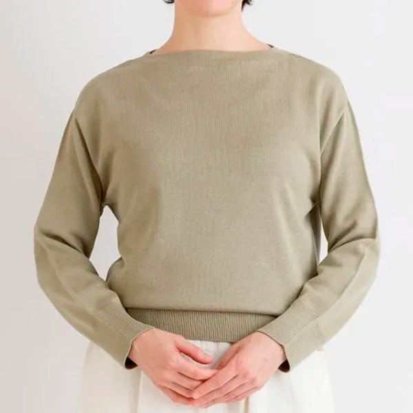 天衣無縫 アルティメイトピマ ボートネックプルオーバー《 M~L 》生成り/グリーン 日本製