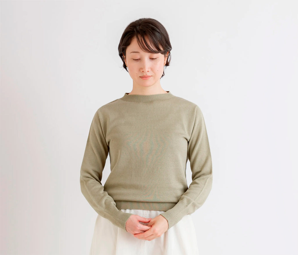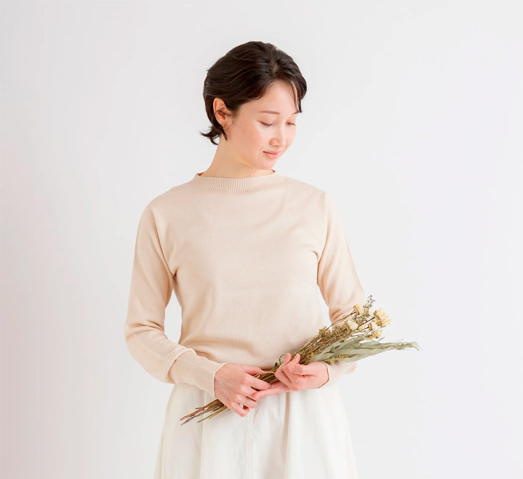 「天衣無縫」では、ブランド名にも通じるホールガーメントを多くのニット製品に採用しています。なめらかで軽やかな、着心地の良さをお楽しみください。