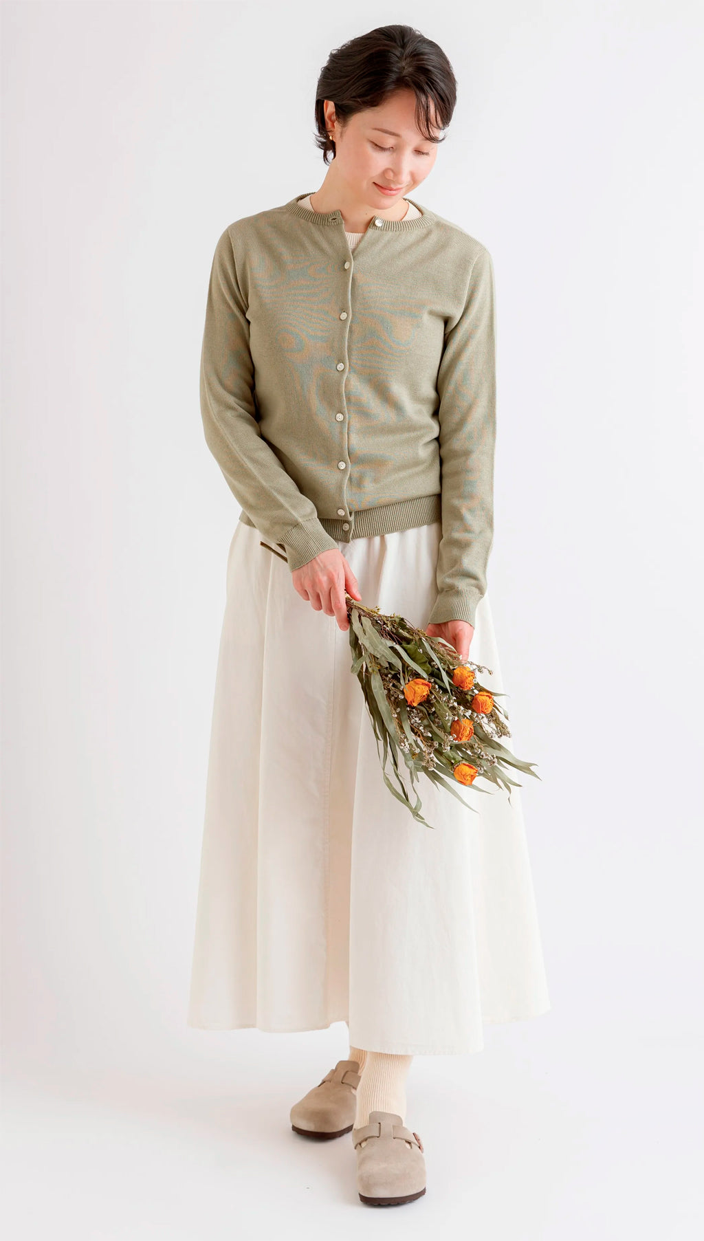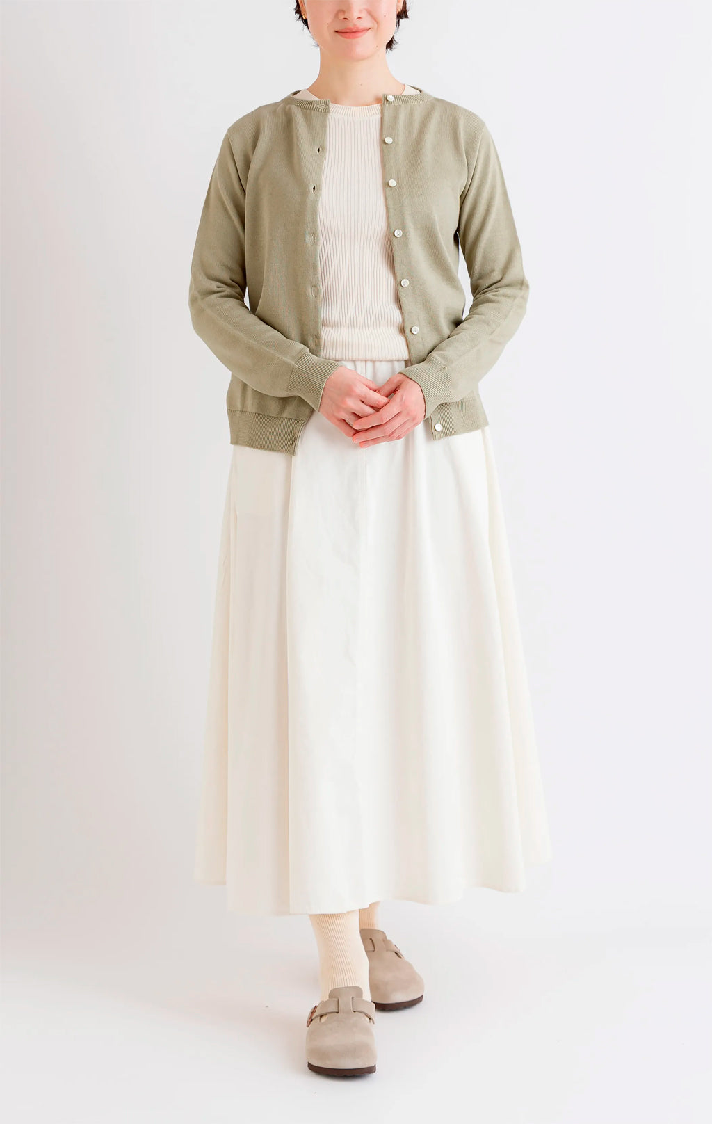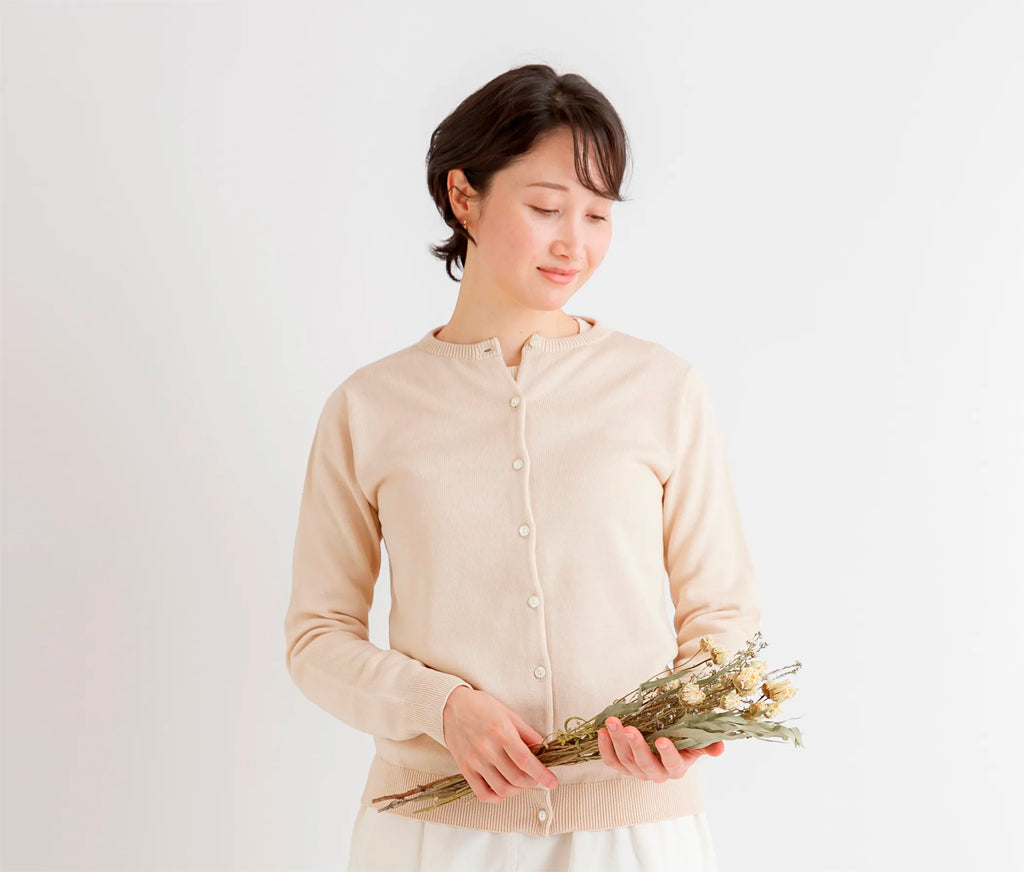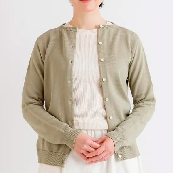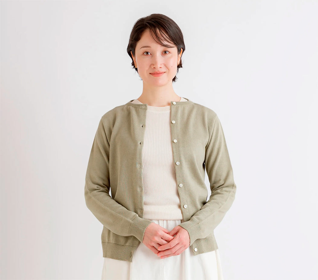 天衣無縫 アルティメイトピマ カーディガン《 M~L 》生成り/グリーン 日本製