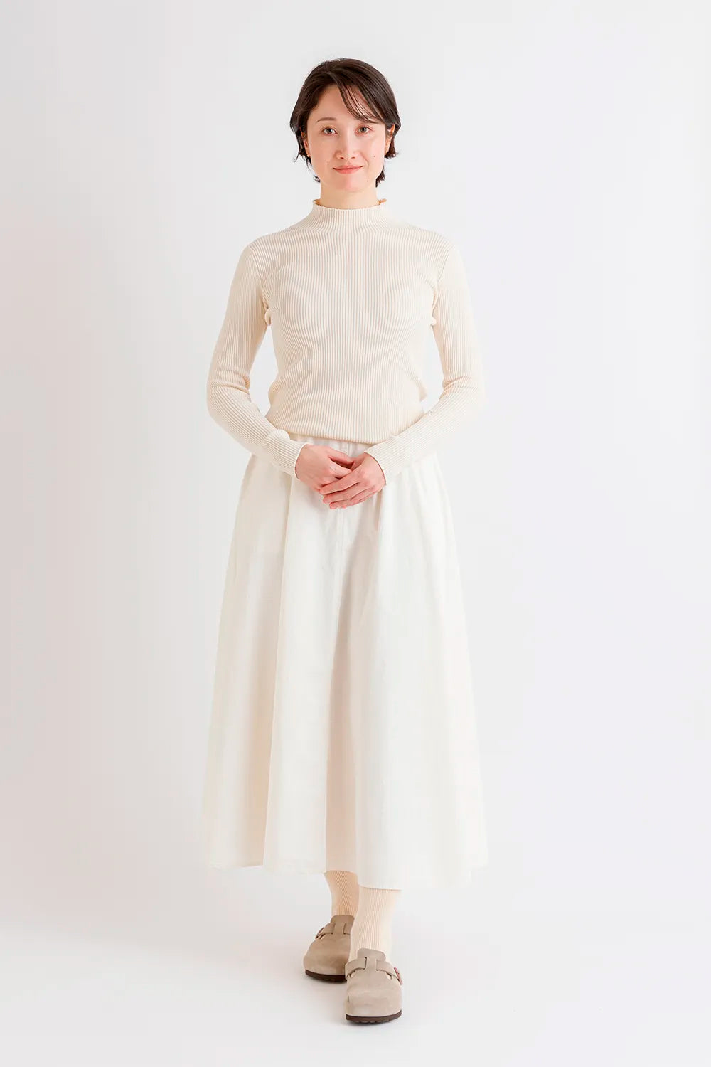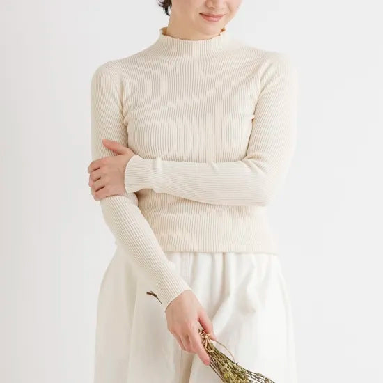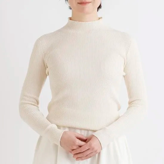 天衣無縫 シルクコットン 縫い目のないハイネック《 M~L 》生成り 日本製