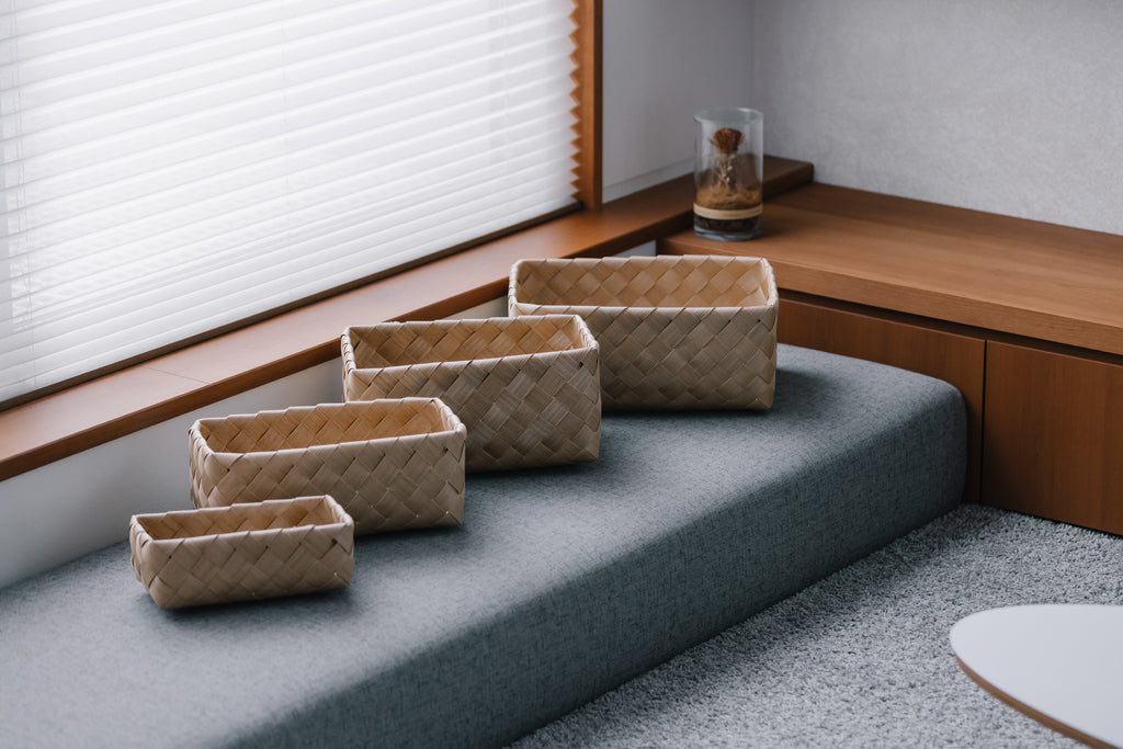 北欧の白樺かごをイメージしてつくった独自開発の新素材TENESQUE(テンネスク)。